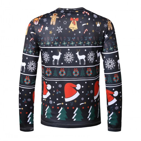 New 3D Personality Printing Fashion Men's Christmas Santa Pattern Long-Sleeved T-Shirt