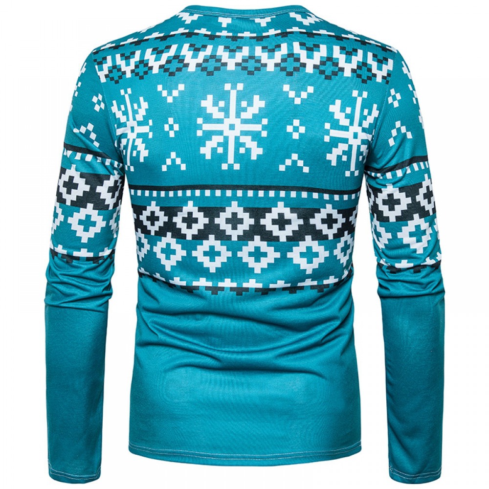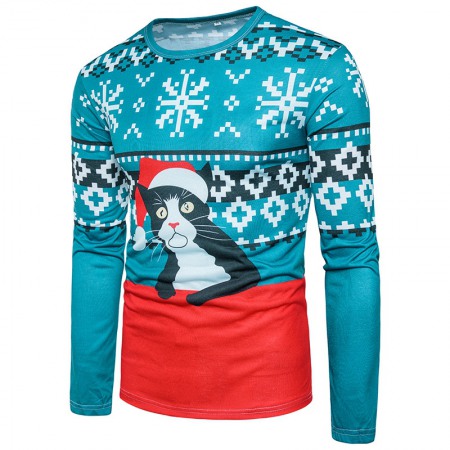 New 3D Personality Printing Fashion Men's Christmas Elk Pattern Long-Sleeved T-Shirt