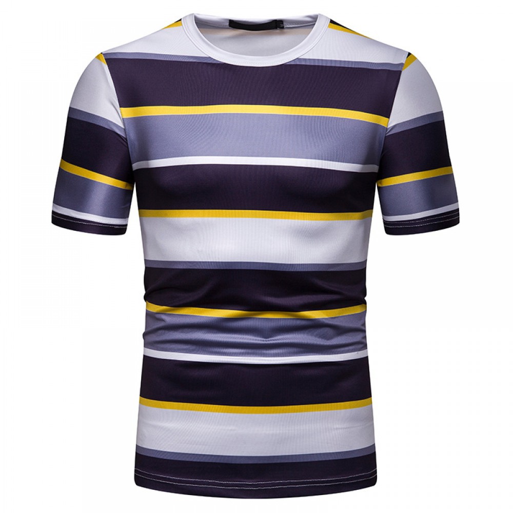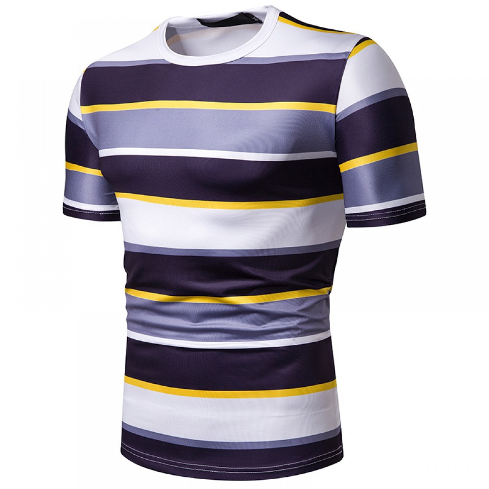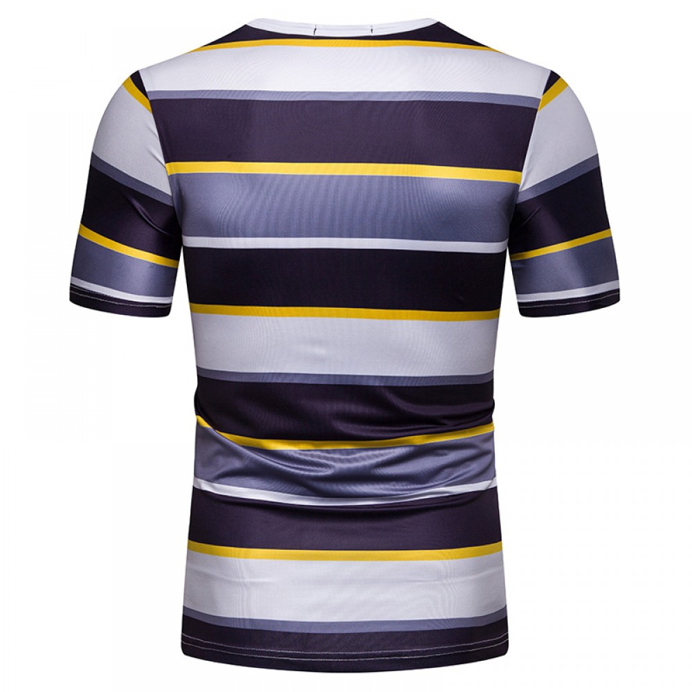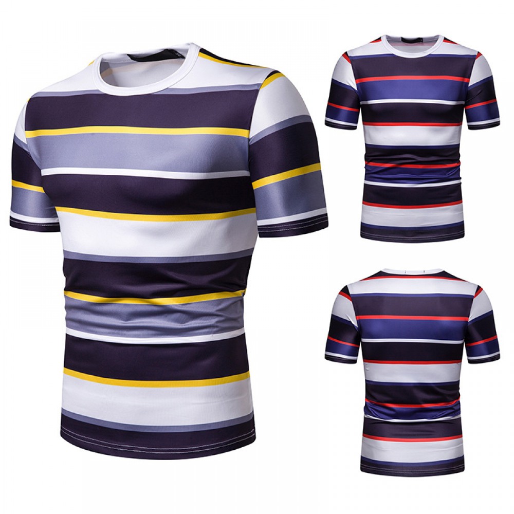 New Summer Men's Short-Sleeved T-Shirt Mens Contrast Striped Slim Casual T-Shirt